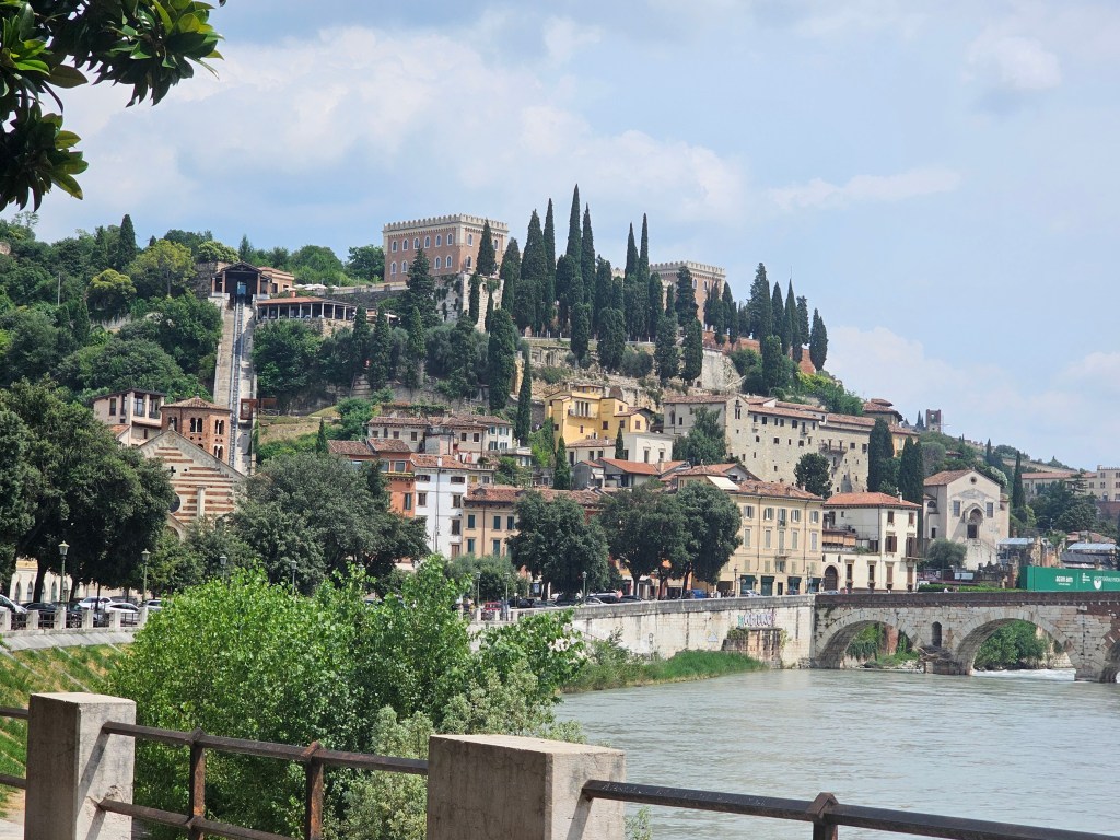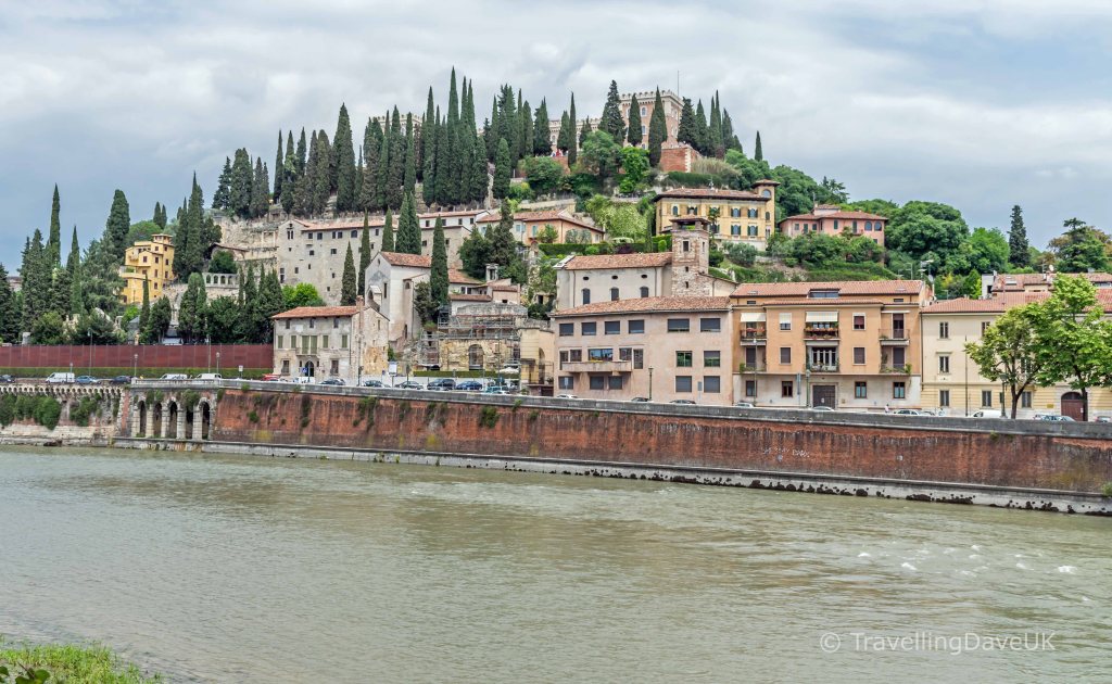 The beautiful Ponte Castelvecchio (or Ponte Scaligero) crossing the river can also be seen nearby offering beautiful views from many lookouts along the bridge.