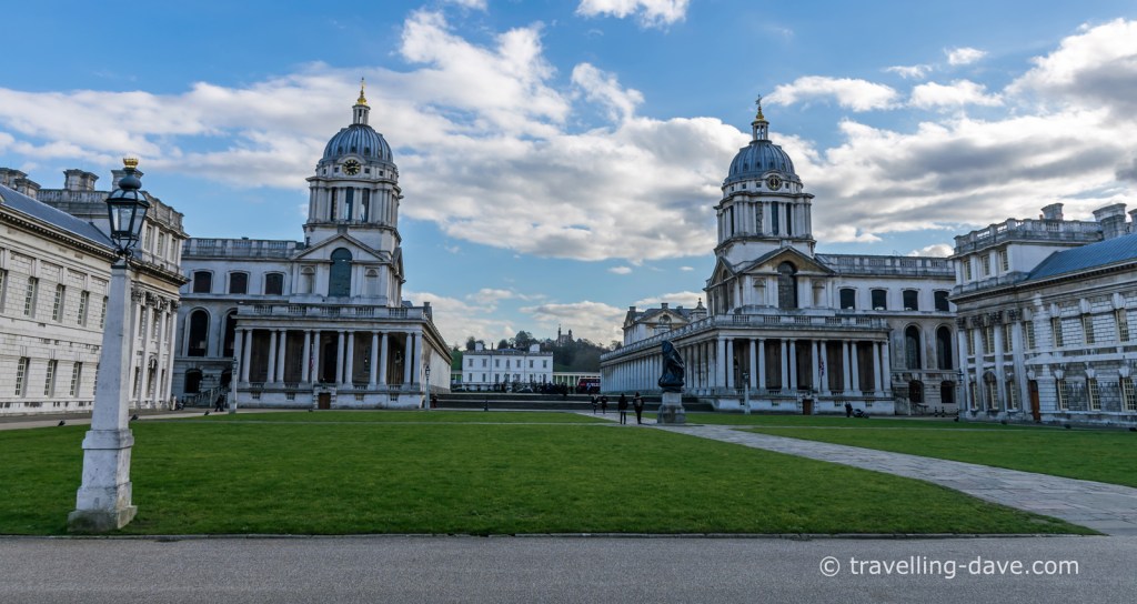 Opposite the Maritime Museum is Greenwich Park with the Royal Observatory visible in the distance on the top of the hill.