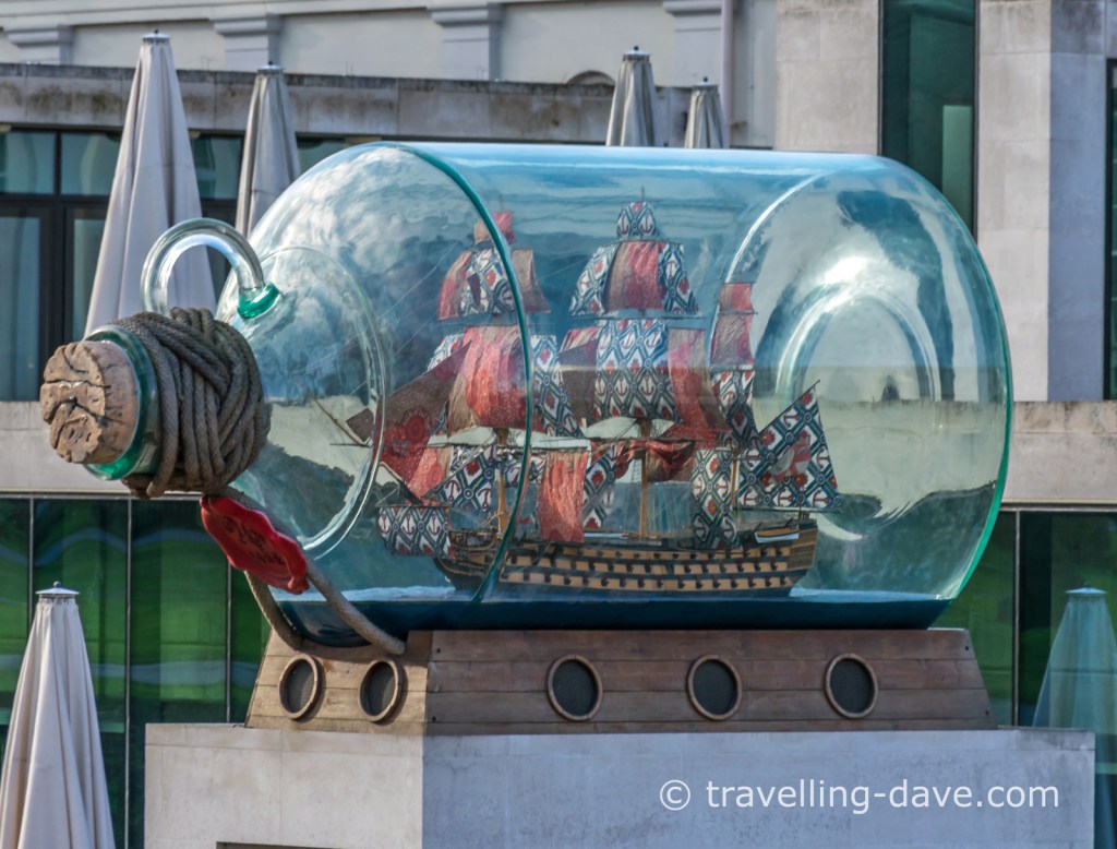 Outside the Maritime Museum is Yinka Shonibare sculpture “Nelson’s Ship in a Bottle”, a scaled-down replica of HMS Victory; it was moved from the Forth Plinth in Trafalgar Square, in Central London to its current position outside the museum.