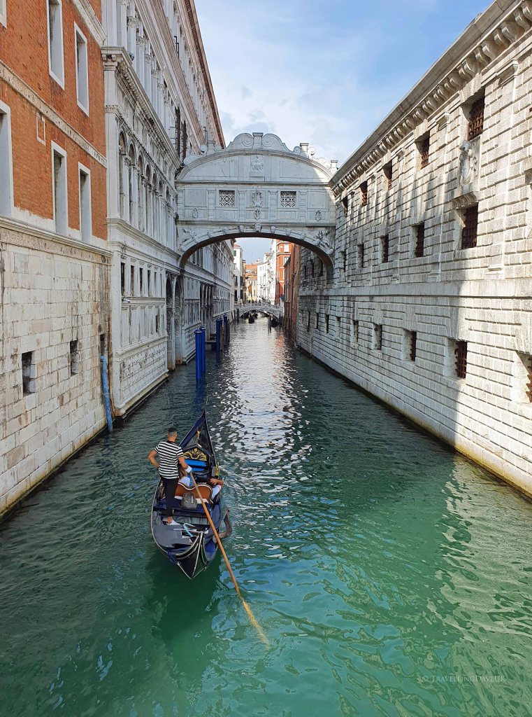 Returning to Piazza San Marco, walking south through Piazzetta San Marco, is the Doge’s Palace and walking further along the waterfront is the Bridge of Sighs; legend says that its name comes from the fact that, as it was the bridge connecting the Courts to the prison, convicts crossing it would sigh as they got a last glimpse of the lagoon before entering their cell to serve their sentence.