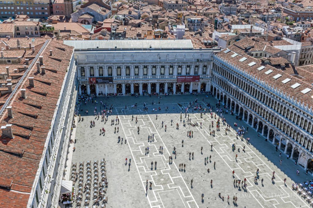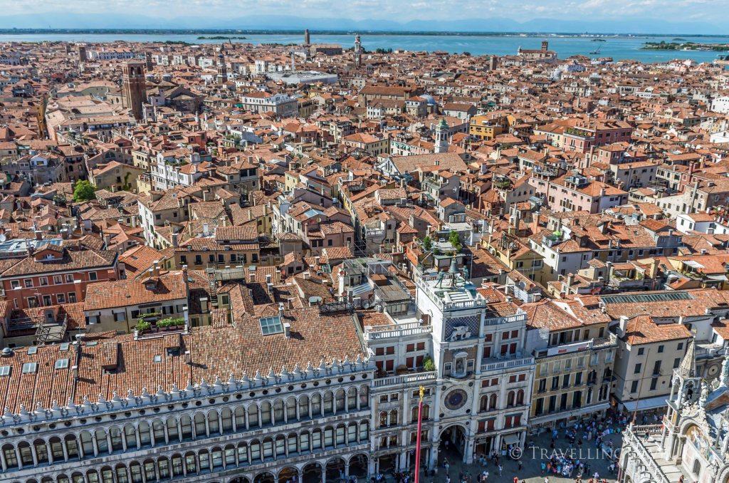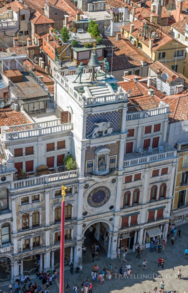 Opposite the basilica is the Campanile, it is definitely worthy to stand in line to get the lift to the top for fantastic views of Venice. Look out over the rooftops to the neighbouring islands and see the square below from a different perspective. From here you get the perfect view of the Clock Tower with the statue of the Two Moors on top.