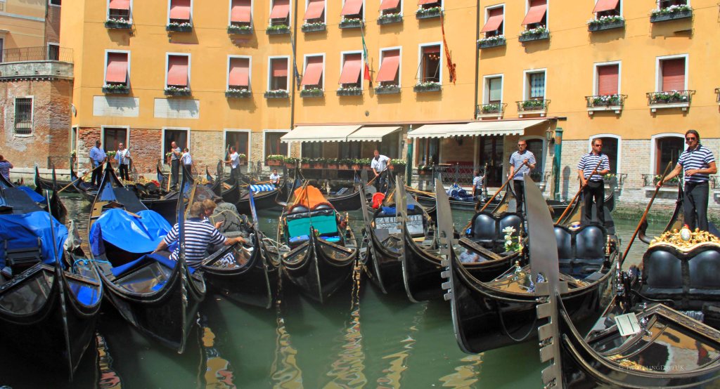 And gondolas are synonymous with Venice; the characteristic flat-bottom boats were once a common mean of transport but, nowadays, are mainly used to ferry around well to do tourists, happy to be photographed by strangers as they pass under bridges in the city while being serenaded by a singing gondolier.